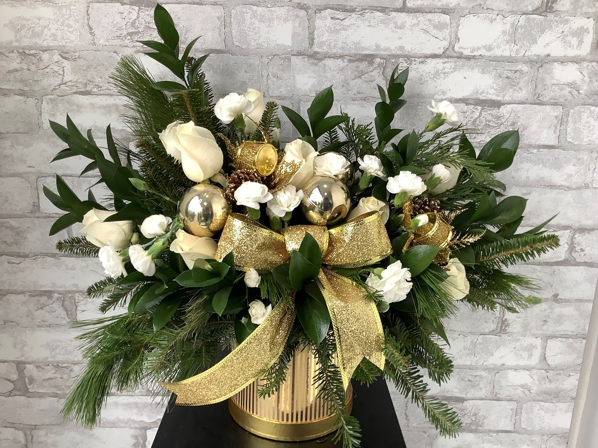 Celebrate the season with our "All Wrapped Up" Christmas flower box arrangement. This expertly curated design combines festive florals in rich reds, elegant whites, and lush greens, perfectly complemented by luxurious wrapping and seasonal accents. Each arrangement is thoughtfully composed to bring warmth and holiday cheer to any space. Ideal for gifting or creating a stunning centerpiece, this arrangement captures the spirit of Christmas with sophisticated style and fresh, premium blooms that will brighten your home throughout the festive season.
