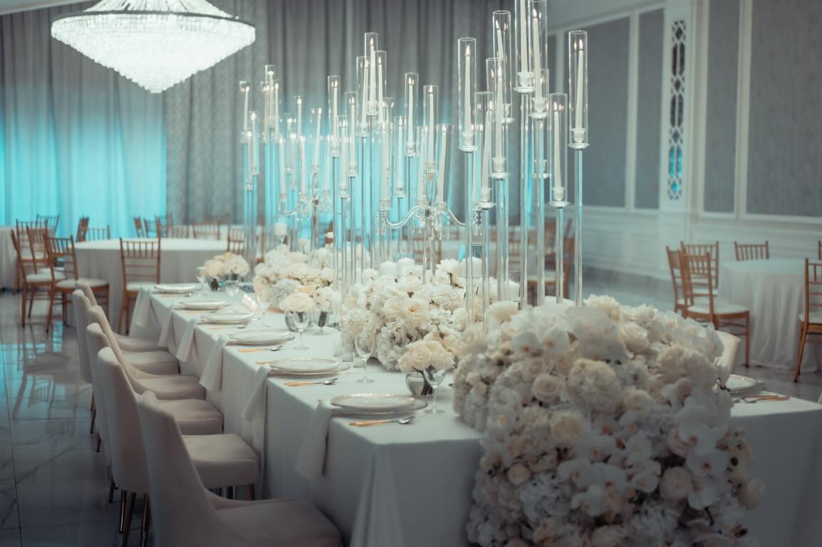 We offer wedding table centerpieces, floral runners, toppers or accents for your cake, bar, or welcome tables.